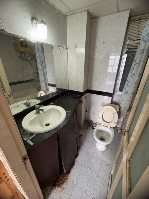 Phòng tắm được thiết kế với tông màu xám hiện đại, vòi sen âm tường, gương cảm ứng tích hợp đèn và tủ lavabo thông minh. Mọi chi tiết đều được tính toán tỉ mỉ để đảm bảo tiện nghi mà vẫn tiết kiệm diện tích.